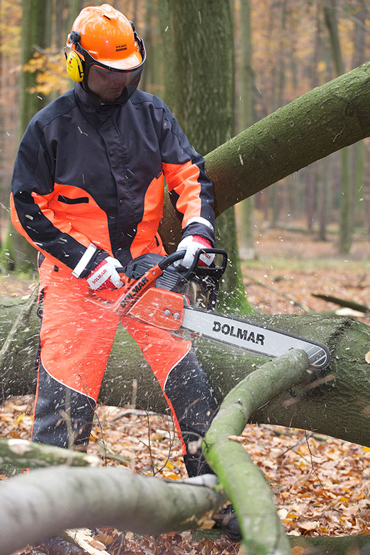 Benötigten Waldarbeiter bisher neben einer Fällsäge ein zweites Gerät zum Entasten der Stämme, bietet der Hamburger Hersteller Dolmar mit der PS-6100 eine Säge, die beide Aufgaben souverän erledigt. So entfällt die Mitnahme von zwei schweren Sägen in den Forst – insbesondere bei langen Gehstrecken in unwegsamem Gelände eine Erleichterung. Auch das Transportieren von großen Benzinreserven verringert sich. Die sechs Kilogramm leichte PS-6100 verfügt über einen 0,8 Liter fassenden Tank. Dies macht sehr lange Laufzeiten und weniger Tankpausen möglich. Außerdem arbeitet die Zweitakt-Motorsäge dank SAS-Technologie sparsam: Beim offenen Gaswechsel verringert ein Luftpolster zwischen den ausströmenden Alt- und den einströmenden Frischgasen die unverbrannten Kohlenwasserstoffe und Stickoxide im Abgas und reduziert so den Kraftstoffverbrauch um bis zu 20 Prozent.