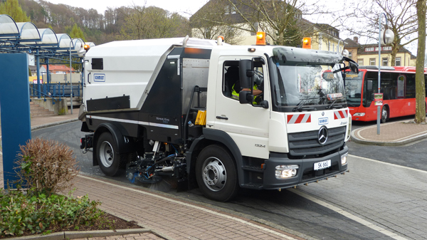 Kunden dürfen ein sauberes Kehrergebnis bei gleichzeitig höherer Kehrgeschwindigkeit erwarten. Dies bedeutet auch: mehr Kehr-Strecke in kürzerer Zeit. Die Kehrbreite beträgt 2350 mm, optional ist das Simultan-Kehren mit bis zu 3500 mm möglich. Das gezogene Kehrsystem bietet größtmöglichen Anfahrschutz und eine optimale Überdeckung auch bei Kurvenfahrt. Das Gebläse ist strömungsoptimiert angebaut, so dass trotz geringerem Luftwiderstand eine maximale Saugleistung erfolgt. Dadurch ist weniger Antriebsleistung erforderlich. Zudem ist das Gebläse hydraulisch angetrieben und nahezu stufenlos regelbar. Der Luftdurchsatz liegt bei 18.000 m³/h (free flow).