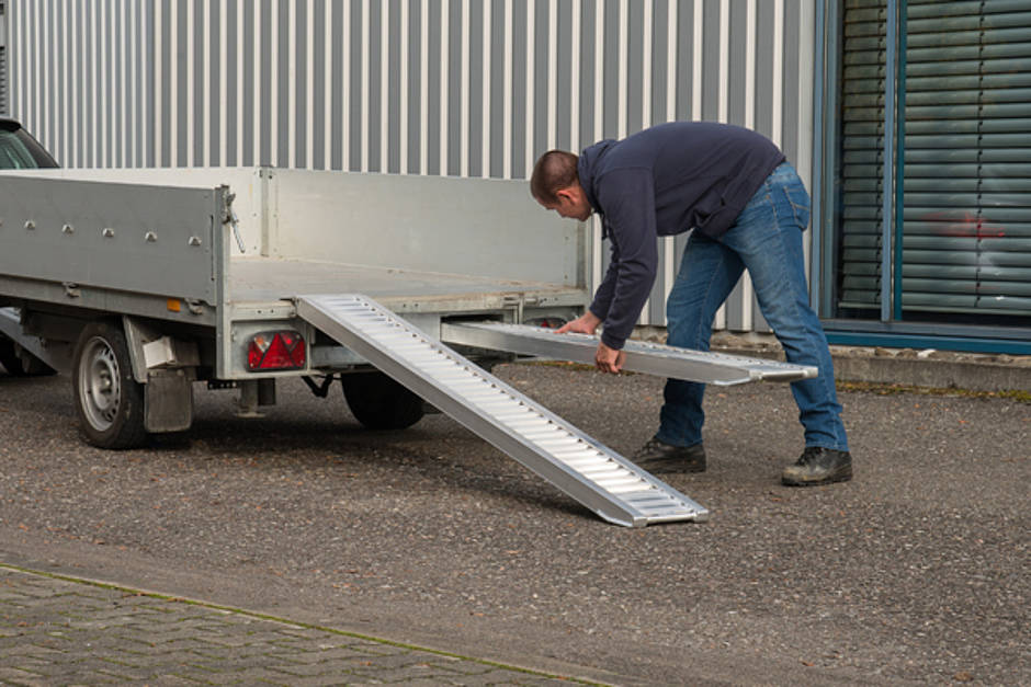 Ist man in Besitz eines Anhängers mit Schubfächern unterhalb der Ladefläche, können die kompakten Rampen vom Typ AVS 65 oder AVS 93 zudem leicht verstaut werden.