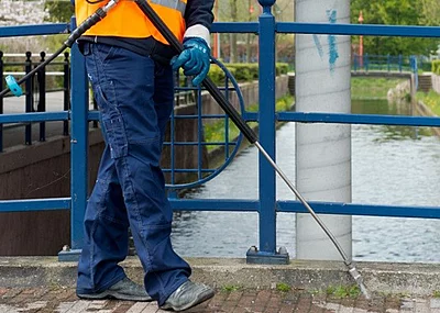 Zusätzlich können Reinigungsarbeiten mit einer speziellen Lanze vorgenommen werden: Die perfekte Kombination aus Hochdruck und Heißwasser reinigt z. B. Parkbänke, Telefonzellen, Spielplatzgeräte oder Papierkörbe.