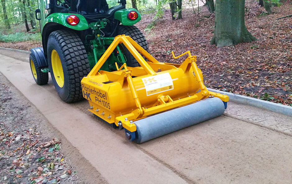 Die Firma HK Heiko Kohn in Wrixum auf der Insel Föhr hat eine schmale Planierhobel-Baureihe PH-S mit Arbeitsbreiten zwischen 100 cm, 130 cm sowie 150 cm vorgestellt. Die drei Modelle PH 100 S, PH 130 S und PH 150 S werden im Dreipunkt-Anbau gefahren. Die U-förmige Rahmenkonstruktion des Planierhobels sorgt für die effiziente Verteilung von Wegebaumaterialien wie Grand, Schotter, Kies, Splitt und Sand. Durch die integrierte Walze für die Rückverdichtung können wassergebundene Fuß-, Rad- und Wanderwege sowie Granddecken schlagkräftig in einer Überfahrt gepflegt werden. Die schmalen Abmessungen ermöglichen zudem die Pflege von Wegen in Parkanlagen und auf Friedhöfen.