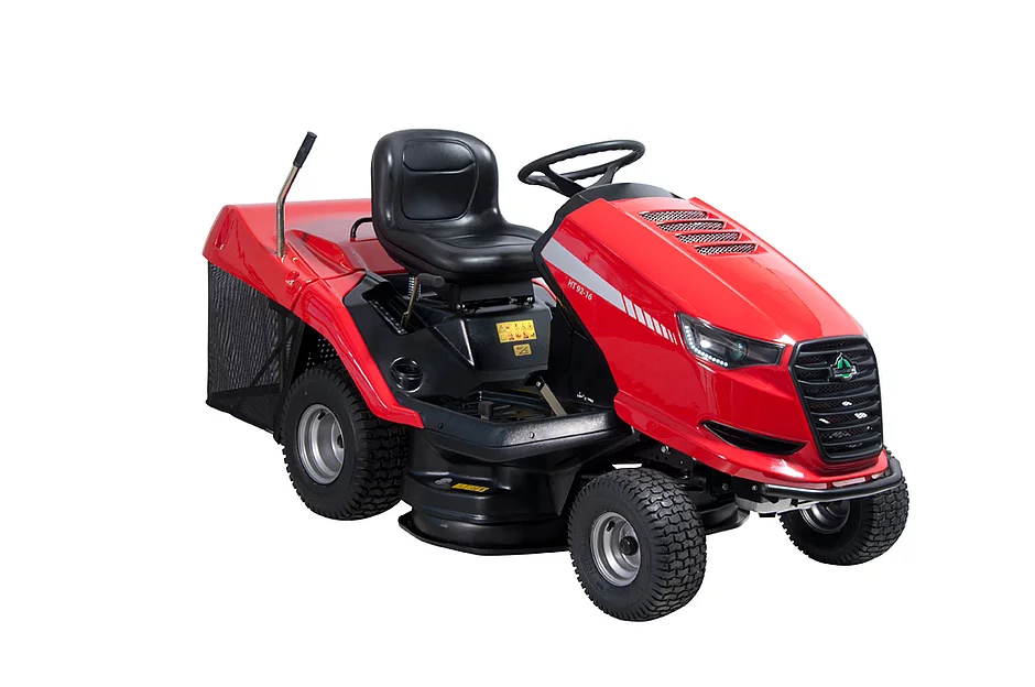 Neben dem modernen Design lässt die hochwertige Topausstattung kaum Wünsche offen. Durch das schräg angelegte Zwei-Messer-Mähwerk wird ein perfektes und sauberes Schnittbild erreicht. Das Schnittgut gelangt dank eines aerodynamisch geformten Auswurfkanals schnell und sauber in den Grasfangkorb. Ausgestattet ist der HT 92 Rasentraktor wahlweise mit einem leistungsstarken 1 oder 2-Zylinder Motor von Briggs & Stratton mit bis zu 12 KW, einem Hydrostat-Getriebe und einem Fangkorb mit 300 l Volumen.