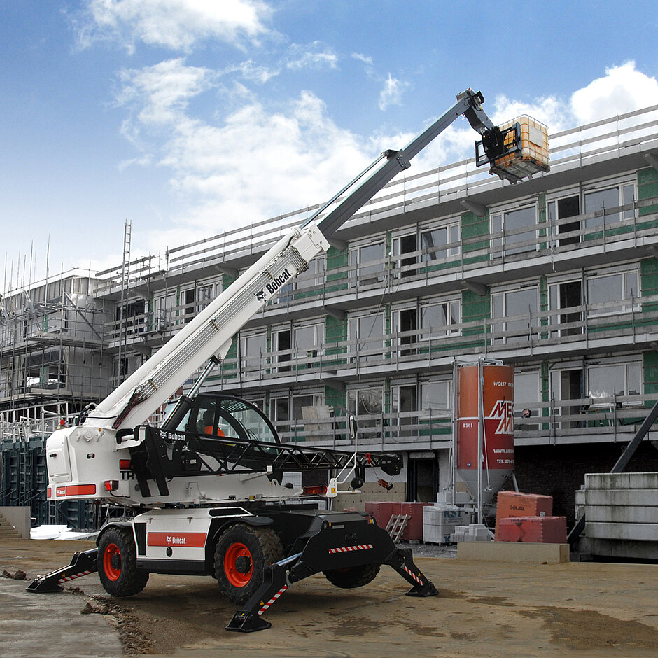 Mit ihrem Drehvermögen von 360o (beim TR50210, TR40250 und TR45190) bzw. 400o (beim TR38160) können die Bobcat Roto-Teleskop-Modelle von einem einzigen Standort aus den gesamten Bedarf einer Baustelle abdecken. Die Maschinen können innerhalb weniger Minuten eingerichtet werden und bieten hervorragende Standsicherheit beim Anheben schwerer Materialien – sowohl in vertikaler Richtung auf ein Dach als auch in der Waagerechten bis zur weiter entfernten Seite einer ausgehobenen Baugrube. Das senkt die Bauzeit und damit die Kosten und sorgt für mehr Sicherheit und höhere Effizienz auf der Baustelle.