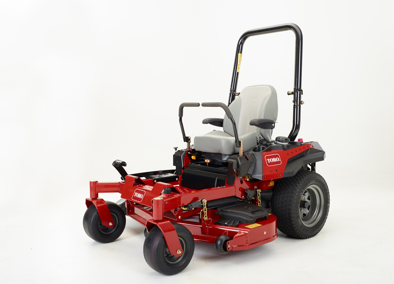 Außerdem hilft auch ein großer 26,5 l-Kraftstofftank dem Fahrer und damit auch der Effizienz, denn bei genügend Benzin im Tank muss die Arbeit nicht unterbrochen werden. Apropos Kraftstoff: In den beiden neuen Modellen mit unterschiedlicher Schnittbreite werden die neuen Toro-eigenen Motoren verbaut, die besonders durchzugsstark und dennoch sparsam sind. So besteht nun die komplette Maschine aus Toro-Teilen, das bietet Vorteile bei einer eventuellen Garantieabwicklung mit nur einem Ansprechpartner.