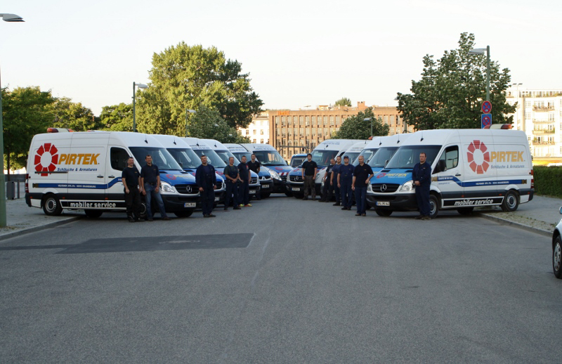 Bundesweit ist Pirtek derzeit mit mehr als 230 Werkstattwagen und 59 Centern präsent. Im Falle von Hydraulikdefekten bringen die mobilen Servicewagen die Werkstatt zur Baustelle und helfen vor Ort – und zwar innerhalb einer Stunde (im 50 Kilometer-Radius ums Center), rund um die Uhr. Die Pirtek-Flotte ist deutschlandweit einheitlich ausgestattet und jeder Service-Wagen führt eine umfangreiche Palette aller gängigen Schläuche und Armaturen an Bord: mehr als 1.000 verschiedene Ersatzteile, inklusive Schlauchpresse und -säge.