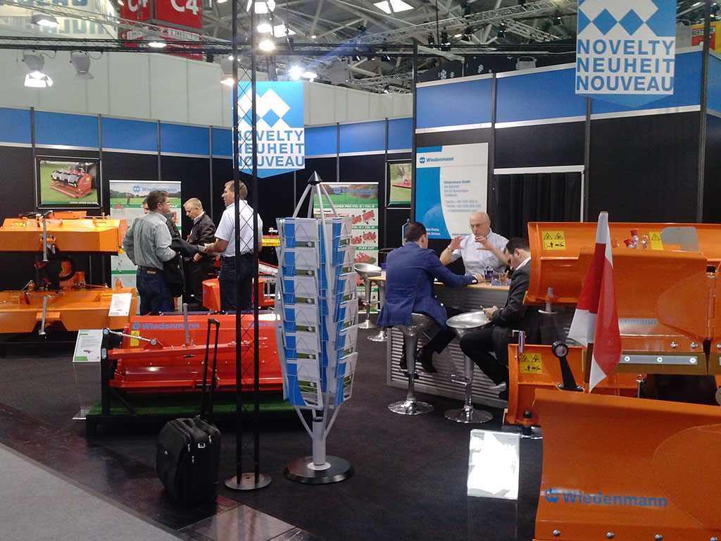 Auf dem Stand der Wiedenmann GmbH, dem Hersteller von Außenpflegemaschinen mit dem gespiegelten W im Logo, bildete die Beseitigung von Schnee, Schmutz und Laub den Kern des Besucherinteresses.