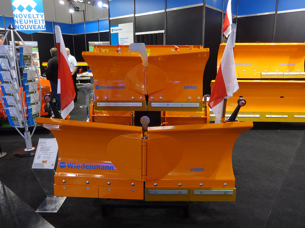 Eine besondere Nachfrage habe es für Schneeschilde gegeben, teilte Marketing-Chef Frank Förstner mit. Wiedenmann hatte die kleinen Vario-Modelle 3353 und 3357 mit nach München gebracht: Kombi-Federklappen-Räumschilde für Kompakttraktoren und Kommunalfahrzeuge, die unter beengten Platzverhältnissen schnelle Ergebnisse erzielen sollen. Das 3357 ist eines der kleinsten seiner Art überhaupt: Es bietet 111 cm Arbeitsbreite in Geradestellung bei 60,5 cm Schildhöhe. Schräg-, Keil- und V-Stellung mit minimaler Räumbreite ab 97 cm sind möglich. Damit erfüllt Wiedenmann die Forderung vieler Anwender nach einer kompakten Lösung für wendige Fahrzeuge bis 19 kW Motorleistung, die sich zum Beispiel auf engen Geh- und Radwegen, Parkplätzen oder Betriebsgeländen einsetzen lassen. Das neue Schild wiegt lediglich 132 kg.
