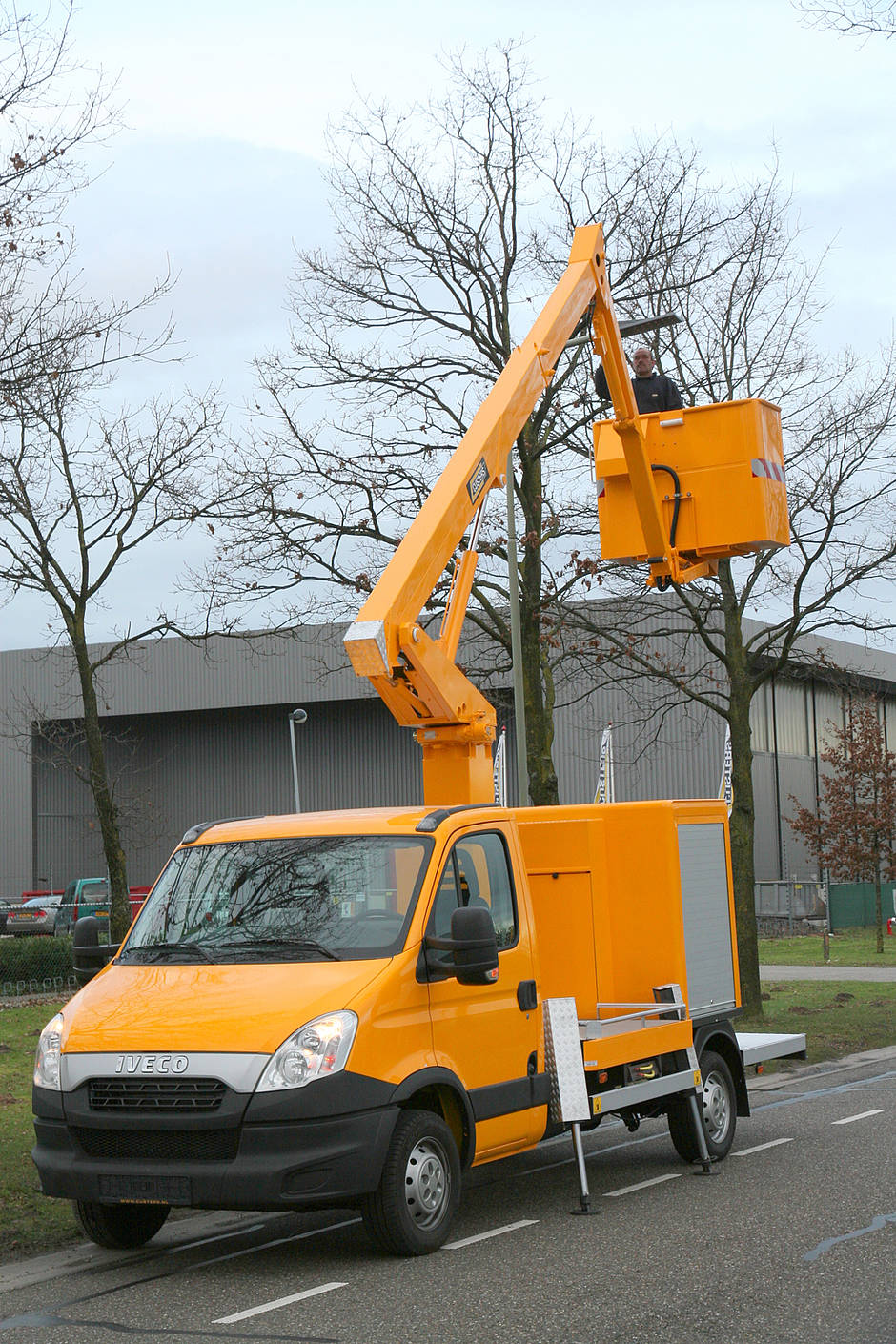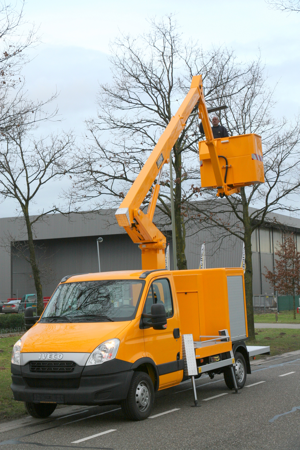 Die Bühne Taurus 230-14ML von Van der Voort hat sogar eine zulässige Zuladekapazität von 350 kg: eine sehr interessante Bühne für Kommunalen, Energieversorger und Vermietungsfirmen, die im Bereich öffentliche Beleuchtungen aktiv sind.