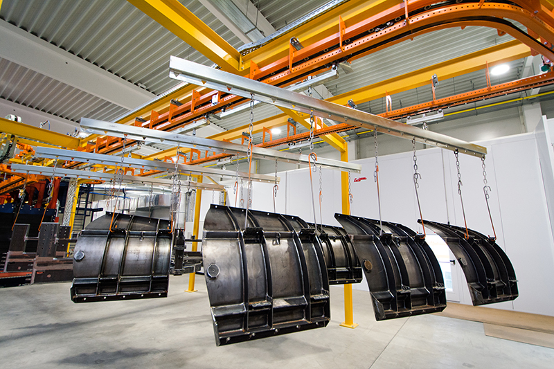 Schneepflüge, Streuer, Auslegermäher und Kehrmaschinen, die im nördlichsten Teil Norwegens und in der Sommerhitze des Mittelmeers arbeiten, müssen maximal geschützt werden. Aus diesem Grund werden ihre Metallteile gestrahlt und mehrfach lackiert, was eine Haltbarkeit bei -30 und +40 Grad garantiert. Die Lackier- und Strahlprozesse fanden bisher in vier Lackier- und zwei Strahlkammern in Rasco statt, durch die im Laufe der Jahre Hunderttausende von Maschinenteilen und Gehäuse gegangen sind. Mit der neuen, hochmodernen Oberflächenschutzlinie werden die meisten Strahl- und Lackierprozesse an einem Ort bearbeitet, was die Produktion vereinfacht und beschleunigt.