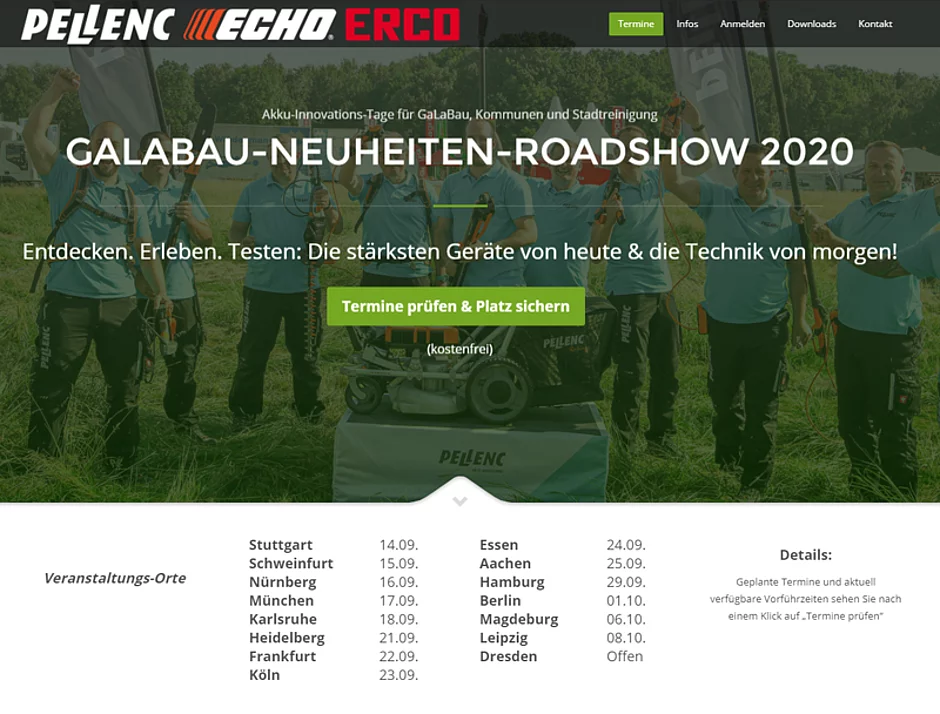 Der Besuch der Vorführ-Roadshow ist für Fachbesucher kostenfrei, aufgrund der aktuellen Bedingungen ist jedoch eine vorherige Anmeldung erforderlich – am besten direkt auf der Tour-Website: https://galabau-neuheiten.de/.