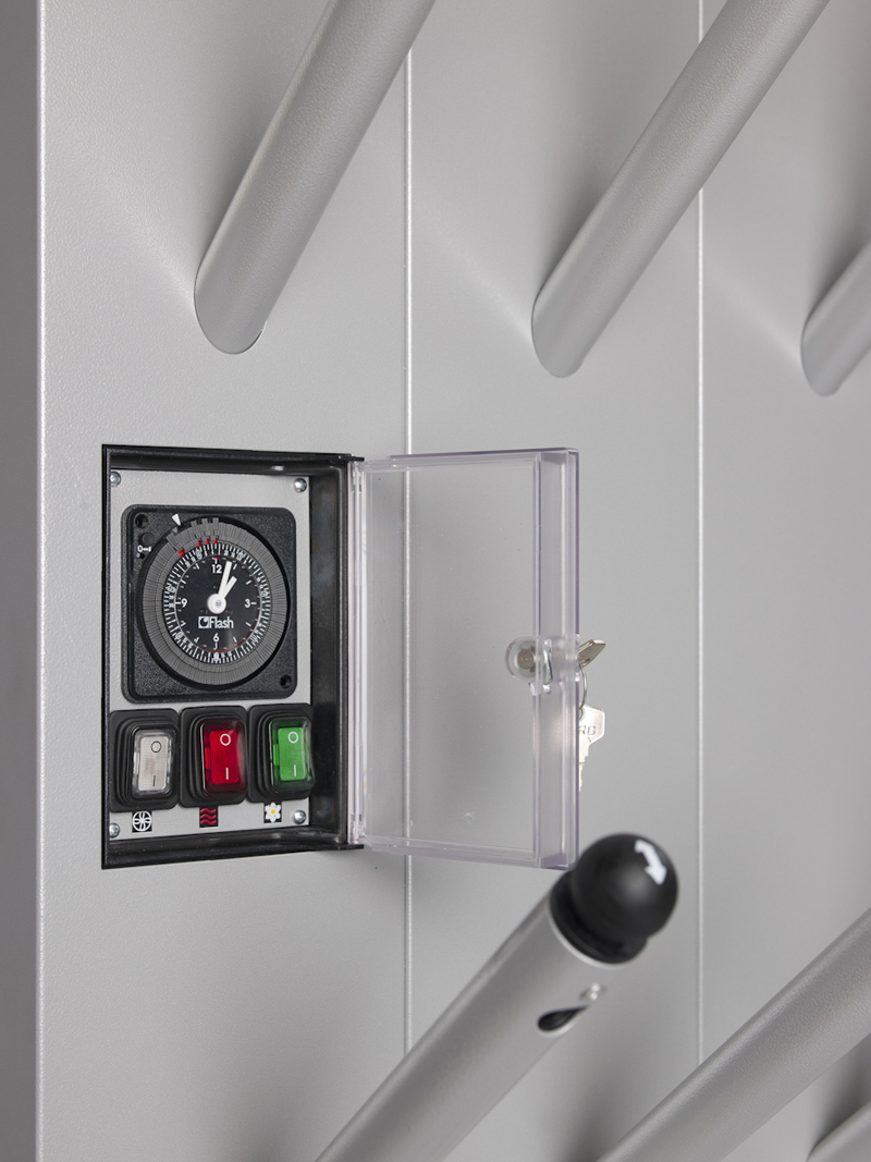Mit der Zeitschaltuhr lassen sich die Trocknungszeiten individuell regulieren, dies ist energiesparend und erhöht den Bedienkomfort.
