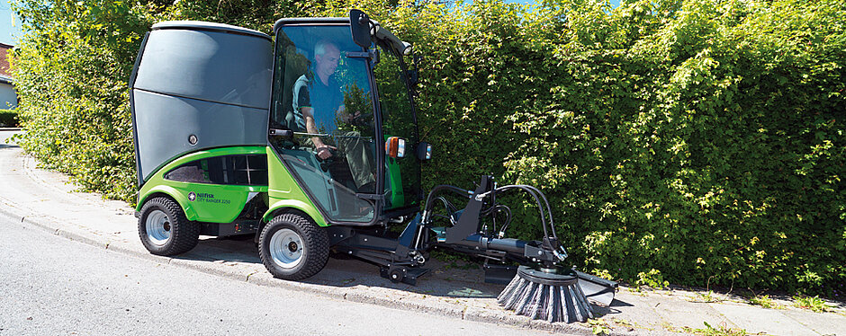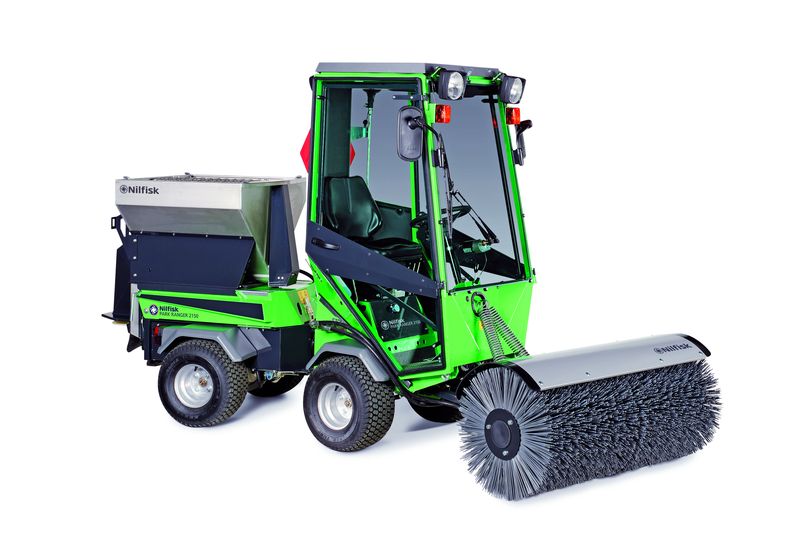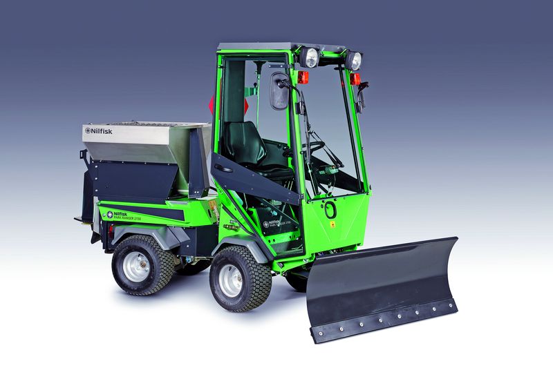 Ein weiteres Messe-Highlight ist der Park Ranger 2150. Auch er meistert sämtliche Herausforderungen der professionellen Outdoor-Reinigung zu allen Jahreszeiten. Dank seiner kompakten Maße von 222 x 101 x 193 Zentimetern (Länge, Breite, Höhe) und einem Wenderadius von 1,5 Metern eignet er sich im Winterdienst besonders für das Schneeräumen auf Geh- und Radwegen, Gehsteigen und anderen beengten Flächen. Die insgesamt 14 Anbaugeräte – zum Beispiel Frontkehrmaschine, Salz- und Kiesstreugerät, Schneefräse und Schneeräumschild für die kalte Jahreszeit – können in weniger als vier Minuten werkzeuglos ausgewechselt werden.