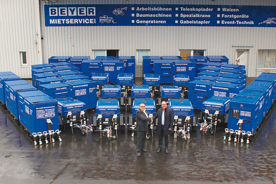 Robust und zuverlässig sollen Sie sein, dabei ein hohes Maß an Qualität bieten und einfache Bedienbarkeit, das waren die wichtigsten Parameter, die bei der Anschaffungsplanung ganz oben auf der Agenda standen. Und für Geschäftsleitung und Mitarbeiter der Beyer-Mietservice KG hieß das nicht nur, die Geräte verschiedener Hersteller theoretisch auf dem Papier zu vergleichen. Mit dem klaren Ziel, den Qualitätsanspruch des europaweit tätigen Vermietunternehmens mit den Anforderungen der Kunden bestmöglich zu vereinen, wurden unterschiedliche Generatoren namhafter Hersteller am Hauptsitz direkt vor Ort in der Praxis geprüft.