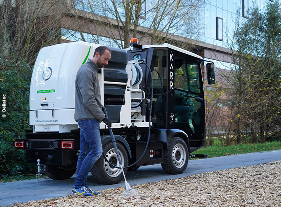 Diese natürliche Methode, die auf ein Hausmittel der Großeltern zurückgeht, ist nicht neu. Das kochende Wasser vom Kartoffelkochen, das über das Unkraut gegossen wurde, führte bei Hersteller Oeliatec zu verschiedenen Prototypen von Maschinen mit Auffangwassertank, Kessel und kochendem Wasser. Jede Maschine wurde weiterentwickelt, sodass immer weniger Energie verbraucht wird und die Geräte leiser und anpassungsfähiger arbeiten. Heute bietet das Unternehmen acht verschiedene Maschinentypen an, die den Anforderungen einer Vielzahl von Fachleuten gerecht werden.