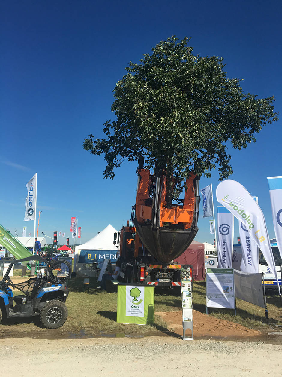 Auf der demopark Sonderschau Baum-Generator zeigen die Experten von Opitz am Stand C-322 wie die Rundspatentechnik mit der Optimal 2500, aufgebaut auf einem Mercedes-Benz Actros, funktioniert. Mit dieser Maschine werden Bäume mit einem Stammumfang von maximal 80 cm verpflanzt. Genau wie im Jahr 2017 wählt das Amt für Tiefbau und Grünflächen der Wartburgstadt Eisenach im Vorfeld Europas größter Freilandausstellung einen zu verpflanzenden Baum aus und bestimmt seinen späteren Standort. An den drei demopark Messetagen vom 23. bis 25. Juni wird die für die Baumart geeignete Rundspatenmaschine inklusive Baum auf der Sonderschau zu sehen sein. Unmittelbar nach der Messe haben Interessierte erneut die Gelegenheit, die fachgerechte Wiedereinpflanzung und Versorgung des Großbaumes am Zielstandort zu beobachten.