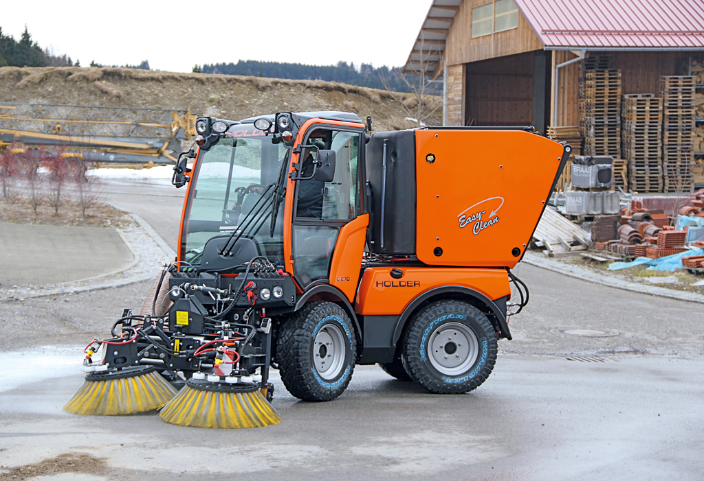 Ein großer Vorteil beim Holder Geräteträger ist darüber hinaus die Möglichkeit zum Wechsel der Anbaugeräte. So wird zum Beispiel im Winter aus der Kehrmaschine ein Fahrzeug zum Schneeräumen und Streuen.