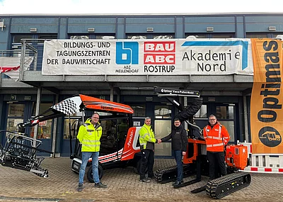 Dazu gehört auch, fachgerecht den Untergrund herzustellen – also Schotter und darauf Brechsand absolut plan einzubauen. Darüber kommen dann H-Profil-Steine, die anschließend abgesandet und eingeschlämmt werden. Für die verschiedenen Arbeitsschritte werden jeweils die passenden Optimas-Geräte genutzt.