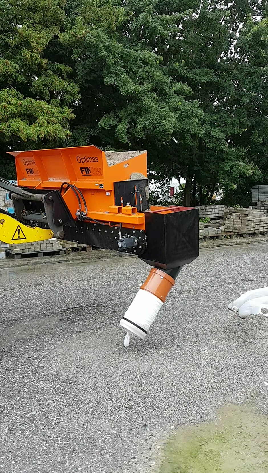 Die Optimas Finliner ist ein Anbaugerät für Radlader. Sie kann auch an Traktoren angebaut werden. Die Finliner besteht aus einem Materialbehälter mit einem Fassungsvermögen von 1,0 m³. Die Schaufel ist 2,0 m breit und das Förderband 2,5 m lang. Angetrieben wird diese Materialverteilschaufel hydraulisch. Sie ist problemlos an jeden Radlader oder Traktor passender Größe montierbar. Die Materialmenge kann vom Fahrer über die steuerbare Geschwindigkeit des Förderbandes bzw. die Fahrgeschwindigkeit des Radladers exakt dosiert werden. Das Förderband steht 50 cm seitlich über. An den Auslass ist ein Füllstutzen montiert, über den zum Beispiel ein Sandschlauch gestülpt ist. Das Schlauchmaterial ist reißfest und dehnbar, kann aber ohne Probleme mit einem Messer geschnitten werden.
