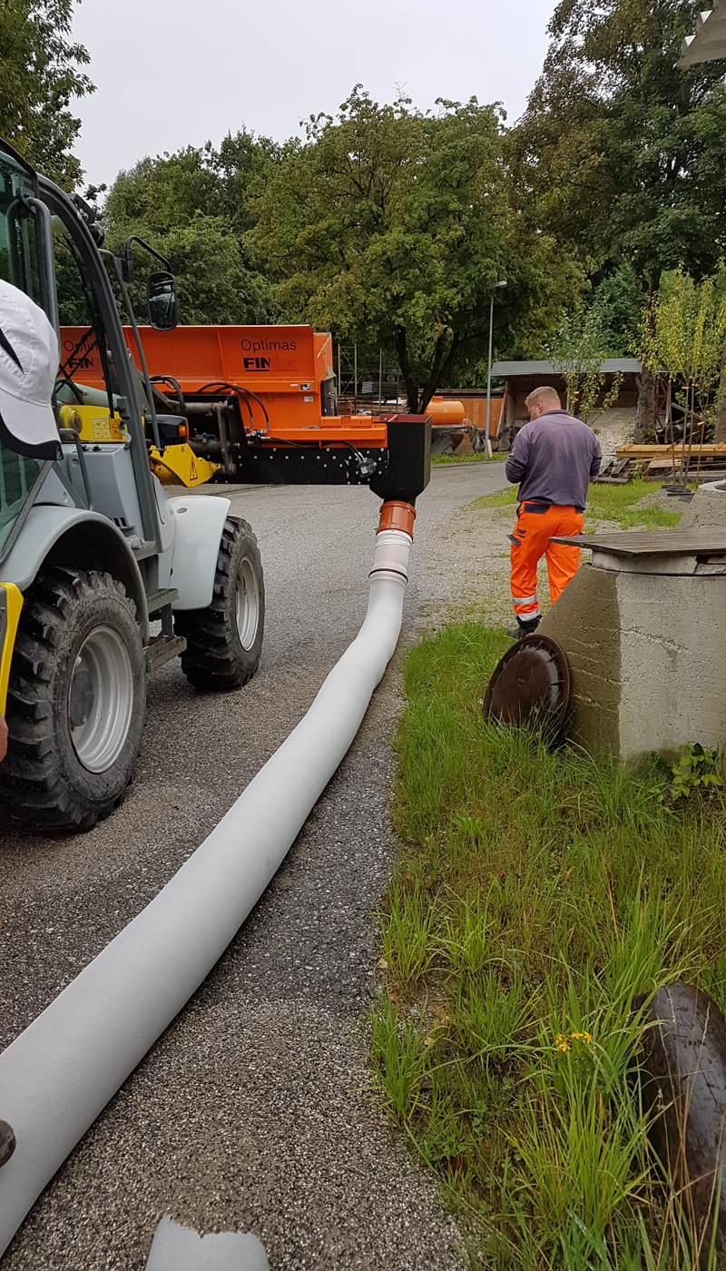 „Mit Hilfe der Finliner-Materialverteilschaufel können wir in einer Minute etwa 30 m Sandschlauch füllen und verlegen. Das macht unseren Hochwasserschutz wesentlich schneller und einfacher. Wir können auch unsere vorhandenen Radlader nutzen. Das ist dann schon eine deutliche Verbesserung für den Hochwasserschutz“, sagt Roman Bals, Bauhofleiter in Markt Peißenberg.
