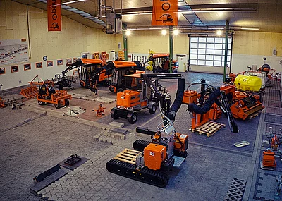 Für den Schlauchheber gibt es verschiedene Saugplatten für ein bis zwölf Platten oder Steine. Dabei sind auch Modelle verfügbar, die zwei Reihen Steine heben und diese mit einem Verschiebemechanismus in den 1/2-Stein- bzw. 1/3-Steinverband bringen. Für die unterschiedlichen Platten ist ein Schnellwechselsystem montiert. Das Vacu-Pallet-Mobil selbst wiegt 1.290 kg. Es kann mit der Palettengabel bis zu 1.600 kg Material bewegen. Angetrieben wird es von einem Hatz-Dieselmotor-Silent-Pack mit 13 PS, EU-Stufe V und Betriebsstundenzähler. Um das Vacu-Pallet-Mobil gut transportieren zu können, sind die Transportmaße so gehalten, dass sie auf einem Anhänger gut untergebracht werden können.