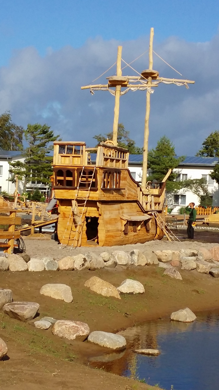 Das elf Meter lange Spielschiff „Weltenbummler“, das am Eröffnungstag getauft wird, erlaubt den kleinen Piraten ein abenteuerliches Klettern und bietet zahlreiche Gelegenheiten für spannende Rollenspiele. Das drehbare Steuerrad an Deck gehört ebenso wie Wasser-Kanonen unter Deck zur Ausstattung, mit der eine „richtige Schiffsatmosphäre“ entsteht.