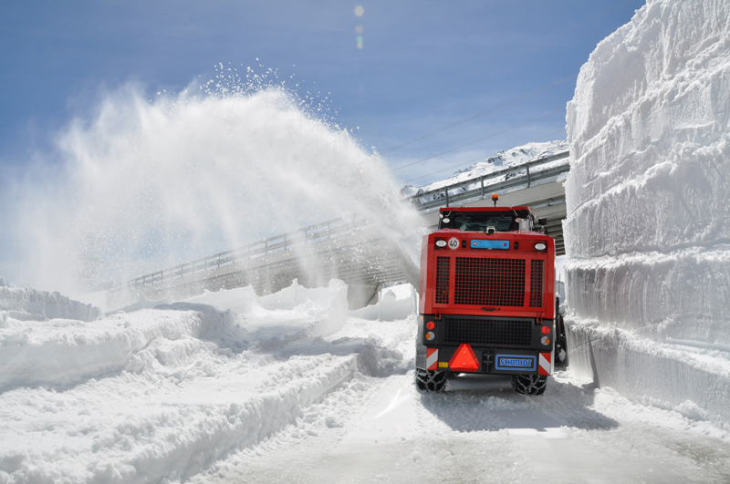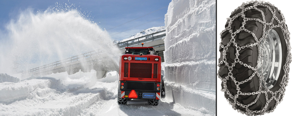 In den Wintermonaten sammelt sich Schnee mit bis zu zwölf Meter Höhe an. Schneefräsen der neusten Generation mit einem Eigengewicht von ca. elf Tonnen seien hier im Einsatz und wurden mit OTTINGER-Schneeketten ausgerüstet, da Sicherheit und Qualität Vertrauenssache sei, heißt es im Weiteren. Die Netzketten der Baureihe GS + XT sind im Laufnetzbereich mit waagrecht und auch senkrecht angeordneten Kettenglieder ausgerüstet sowie wahlweise mit zusätzlichen Profilstegen, für einen besonders harten Gripp und verstärkte Antriebs- und Bremskraft versehen, was die Voraussetzung dafür sei, die Sicherheitsanforderung bei diesen Extremeinsätzen zu gewährleisten. Die Schneekettenbaureihe Netzketten GS + XT werden in Gliederstärken bis zehn mm hergestellt und zeichneten sich durch geringes Verschleißverhalten aus und garantierten somit Wirtschaftlichkeit im Einsatz, heißt es abschließend.