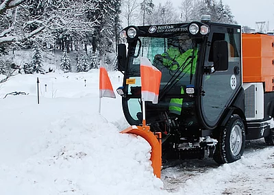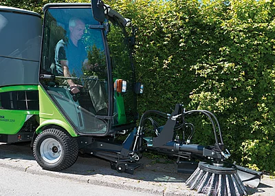 Der Geräteträger <link http: www.nilfisk-outdoor.de produkte city-ranger-3500 ranger>Nilfisk-Egholm City Ranger 3500 bietet exzellente Outdoor-Flexibilität. Mit einer Außenbreite von nur 113 Zentimetern, einem Wenderadius von 190 Zentimetern und einer Hochentleerung von 160 Zentimetern ist das Modell eine wirtschaftlich interessante Alternative in der 3,5-Tonnen-Klasse. Durch seinen hyd-rostatischen Allradantrieb, eine serienmäßig mit Klimaanlage ausgestattete Zwei-Mann-Kabine und 38 Stundenkilometer Höchstgeschwindigkeit eignet sich der Knicklenker ideal für Gehsteige, Nebenstraßen und Parkanlagen. Das umfangreiche Programm der 14 professionellen Anbauten ist perfekt auf die Parameter des Trägerfahrzeugs abgestimmt. Der Clou: Dank des durchdachten Wechselsystems benötigt der Anwender nur zehn Minuten für den Tausch eines Anbaugeräts.