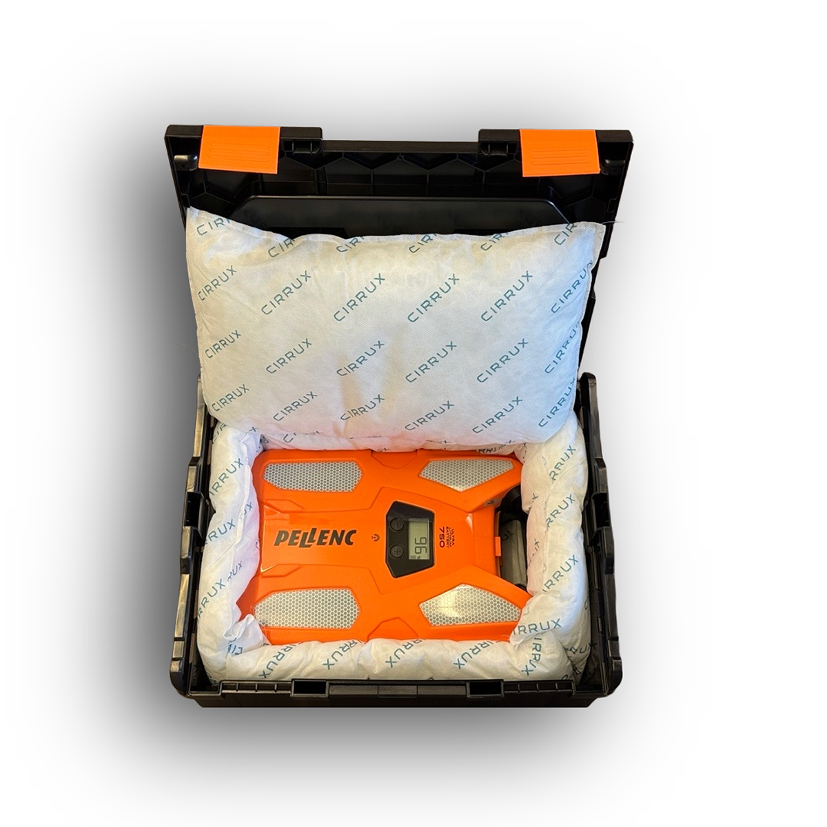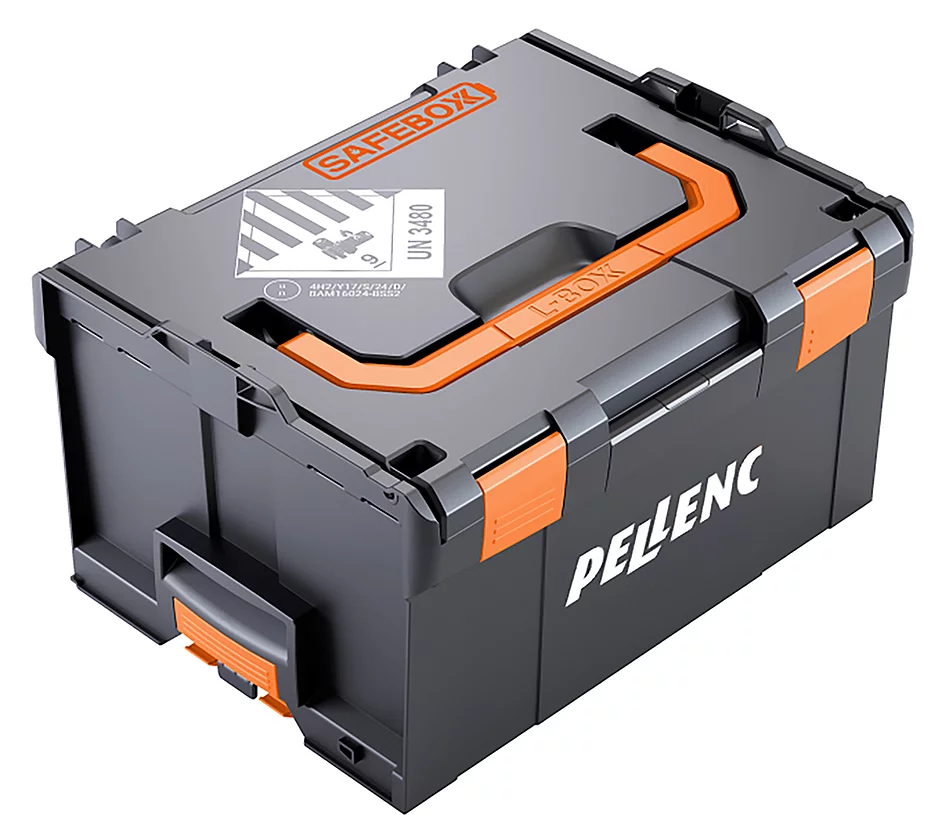 Nicht nur für die Lagerung, sondern auch für den Transport der Akkus bietet PELLENC eine Lösung: Der robuste Sicherheitskoffer aus schlagzähem ABS-Kunststoff ist für Gefahrgut bis 16,5 kg gemäß ADR, RID, IMDG und ATA DGR geeignet und zudem mit dem UN-Prüfzeichen 4H2/Y17/S/YY/D und einer BAM-Zulassung zertifiziert. Dabei ist die Cirrux-Brandschutzeinlage aus nicht brennbarem und nicht leitfähigem Material nach DIN 4102 gefertigt. Dieses absorbiert auslaufende Elektrolyte mit einem Sorptionsvermögen bis 3,49 kg und dämpft Hitzespitzen.