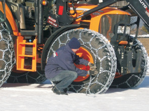 ![]() Auch beiTraktoren sind pewag Schneeketten schnell montiert. |