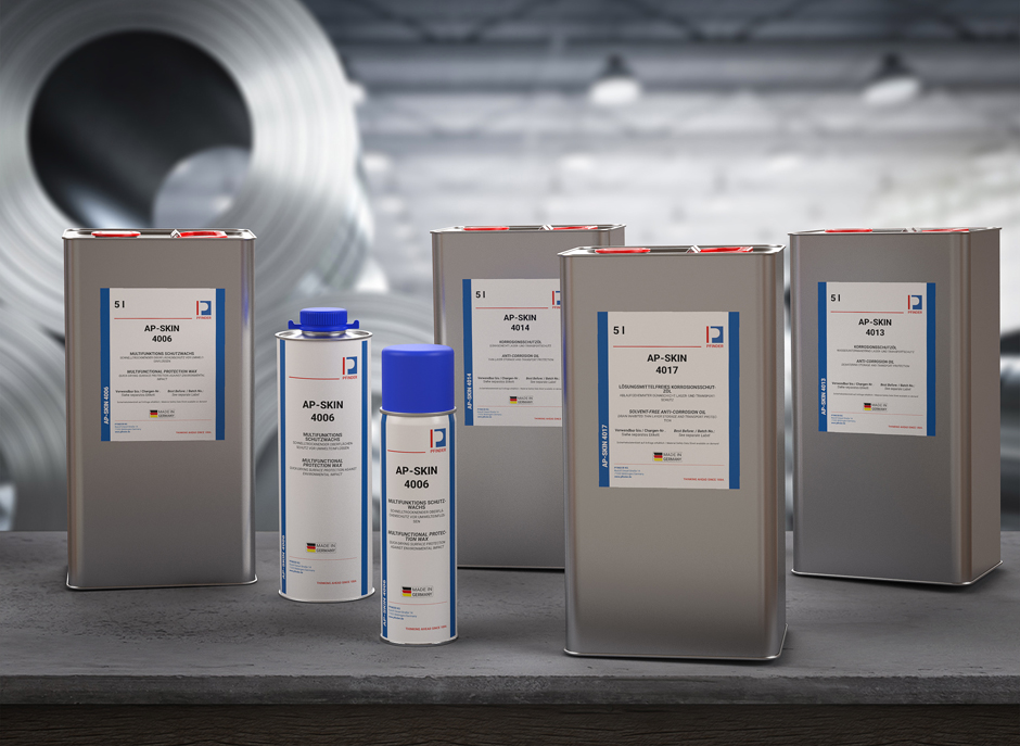Der Anwender steht nun vor der Herausforderung, das richtige Produkt für seine Maschinen zu identifizieren. So unterschiedlich die Anforderungen sind, die an Korrosionsschutz-Beschichtungen gestellt werden, so unterschiedlich sind die Lösungen, die PFINDER bietet. Vielseitige Lager- und Transportschutzbeschichtungen, die je nach Einsatzgebiet in den verschiedensten Varianten – vom klassischen Korrosionsschutz-Öl bis hin zum Multifunktionsschutz-Wachs – entwickelt wurden, umfasst die AP-SKIN-Serie des Herstellers. Schon ab einer Schichtstärke von 2,5 μm gewährleisten die Korrosionsschutz-Öle einen verlässlichen Schutz bis zu sechs Monaten. Sollte ein längerer benötigt werden, sind die Korrosionsschutz-Wachse die richtige Wahl, die bis zu 36 Monate wirken.