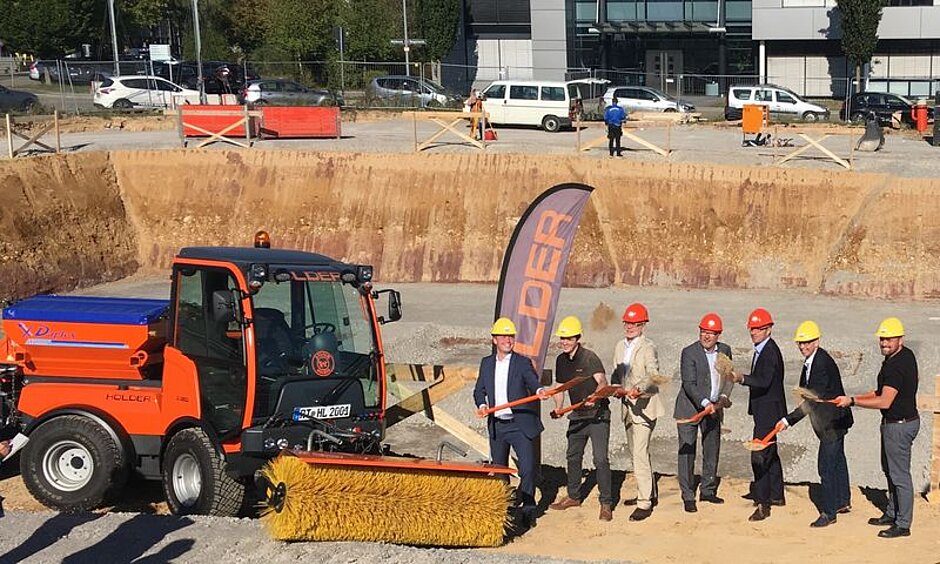 Am 10. September war es soweit: Die Max Holder GmbH hat an ihrem neuen Standort im Interkommunalen Wirtschaftsgebiet Reutlingen-Nord/Kirchentellinsfurt den vollständigen Betrieb aufgenommen. Gut eine Woche später wird nun der nächste Meilenstein gesetzt. Ein neues Kundencenter wird gebaut und Holder lud deshalb zum obligatorischen Spatenstich ein.