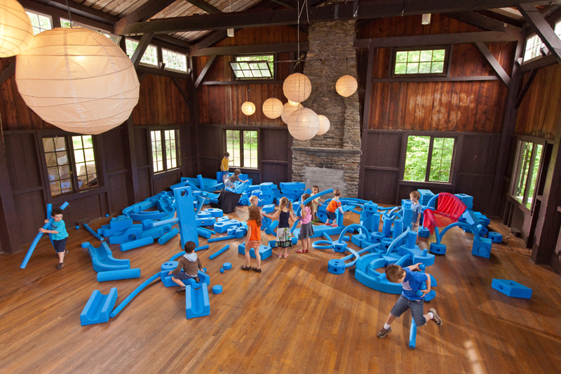 Klettergerüste, Wippen und Piratenschiffe sind wichtige Spielgeräte, die einen festen Platz auf den heutigen Spielplätzen einnehmen. Für bestimmte Einsatzgebiete sind fest installierte Geräte allerdings nicht das Richtige. Der Spiel- und Lernraum der Zukunft muss nicht zwangsläufig an einen Ort, geschweige denn an fest installierte Geräte gebunden sein. Die moderne, alternative Spiellandschaft ist mobil und besteht aus blauen Spielblöcken, die Kinder zum fantasievollen, freien und spontanen Spiel anregen. Der transportable Spielplatz, der von seinem Erfinder, dem Architekten David Rockwell als „Imagination Playground“ für Kinder aller Altersstufen entwickelt wurde, besteht aus 105 Teilen in unterschiedlichen Größen und Formen, darunter Kästen, Zahnräder, Kurven oder Zylinder, die ineinander gesteckt, über- oder nebeneinander gesetzt werden. Sie können in Schulen und Kitas, in Vereinen oder im Touristik-Animationsbereich in Hotels oder auf Kreuzfahrtschiffen als Spiel-Alternative eingesetzt werden.