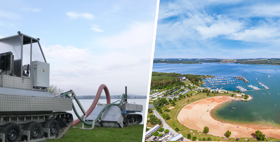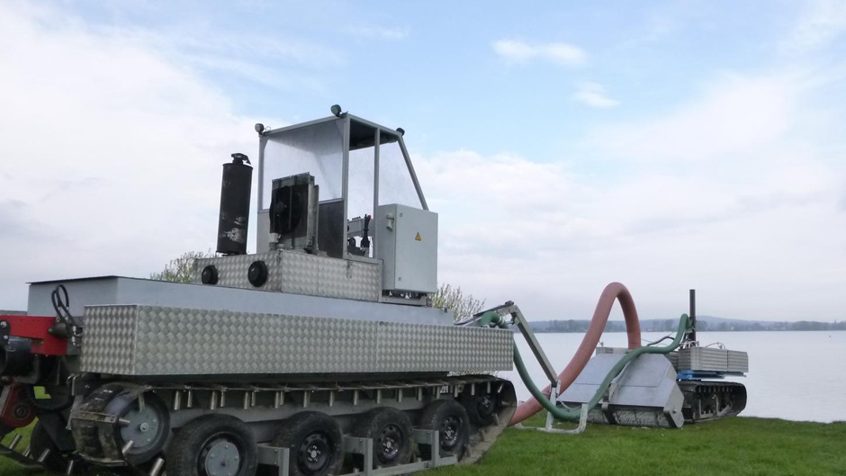 Durch die Hochwasser-Einleitung gelangen jährlich Tausende m3 Sediment in den Altmühlsee. Um eine Verlandung zu verhindern und die Wasserqualität zu verbessern, werden die Ablagerungen bereits seit 2015 regelmäßig entnommen, so auch 2024. Dabei kommen unterschiedliche Saugbaggerverfahren zum Einsatz, je nach Dicke der Schicht. Am Badestrand Wald liegen bis 60 cm vor, in der Auslauftulpe sind es bis zu 1,6 m. Vom Wasserwirtschaftsamt wird hierzu ein Gerät der Firma Schlammsaug eingesetzt. Dieses funktioniert wie eine Kehrbürste, die die Ablagerungen vom Seegrund löst und absaugt. Das Sediment-Wasser-Gemisch wird über eine schwimmende Transportleitung zu den beiden Absetzbecken gepumpt. Anschließend entwässern die Sedimente mehrere Monate. Nach der Getreideernte im Juli/August werden sie von Landwirten auf umliegende Ackerflächen ausgebracht.