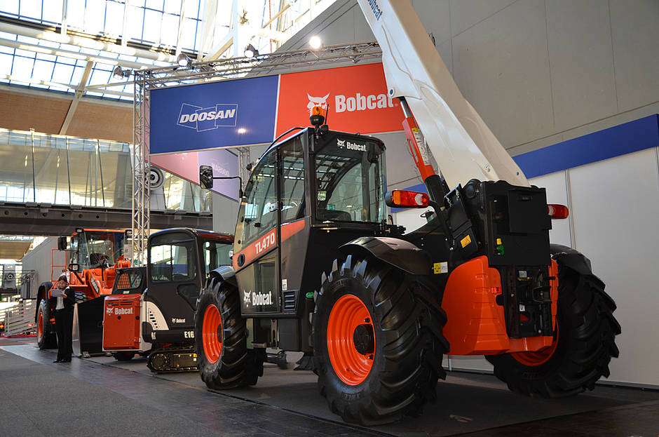 Ebenfalls rege war das Interesse an den gezeigten Maschinen von Bobcat. Im Fokus stand dabei der universell nutzbare Teleskoplader TL470HF mit einer großen Leichtgut-Schaufel. Marktführende Eigenschaften, unter anderem eine Motorleistung von 130 PS, eine Hydraulikleistung von 190 l/min und ein kraftvoller hydrostatischer Antrieb mit 4 Geschwindigkeitsgängen bis 40 km/h, zeichnen den TL470HF aus.
