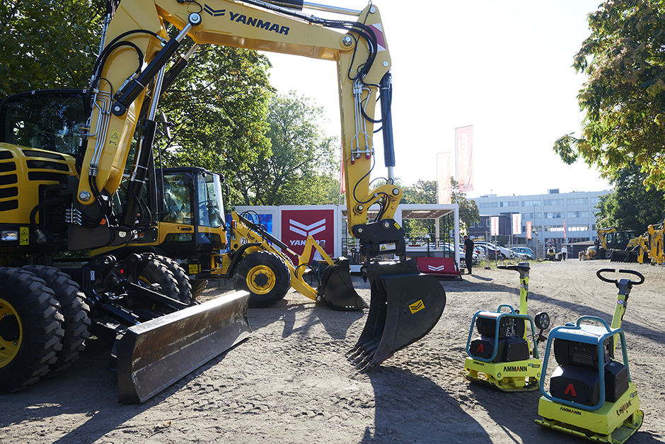 Der erste Stopp in Duisburg erfolgte direkt neben dem Gelände von Händler Kipphardt. Neben den neuen Minibaggern wurden der Mobilbagger B110W, der Radlader V80 und der Raupenbagger SV100 präsentiert – alle in Vollausstattung. Hier konnten sich Kunden und Händler über die Produkte und Leistungen des japanischen Kompaktmaschinen-Herstellers informieren und austauschen sowie verschiedene Maschinen testen. Das Yanmar-Team war mit Maschinenvorführern, Produktspezialisten und Vertriebsmitarbeitern vor Ort.