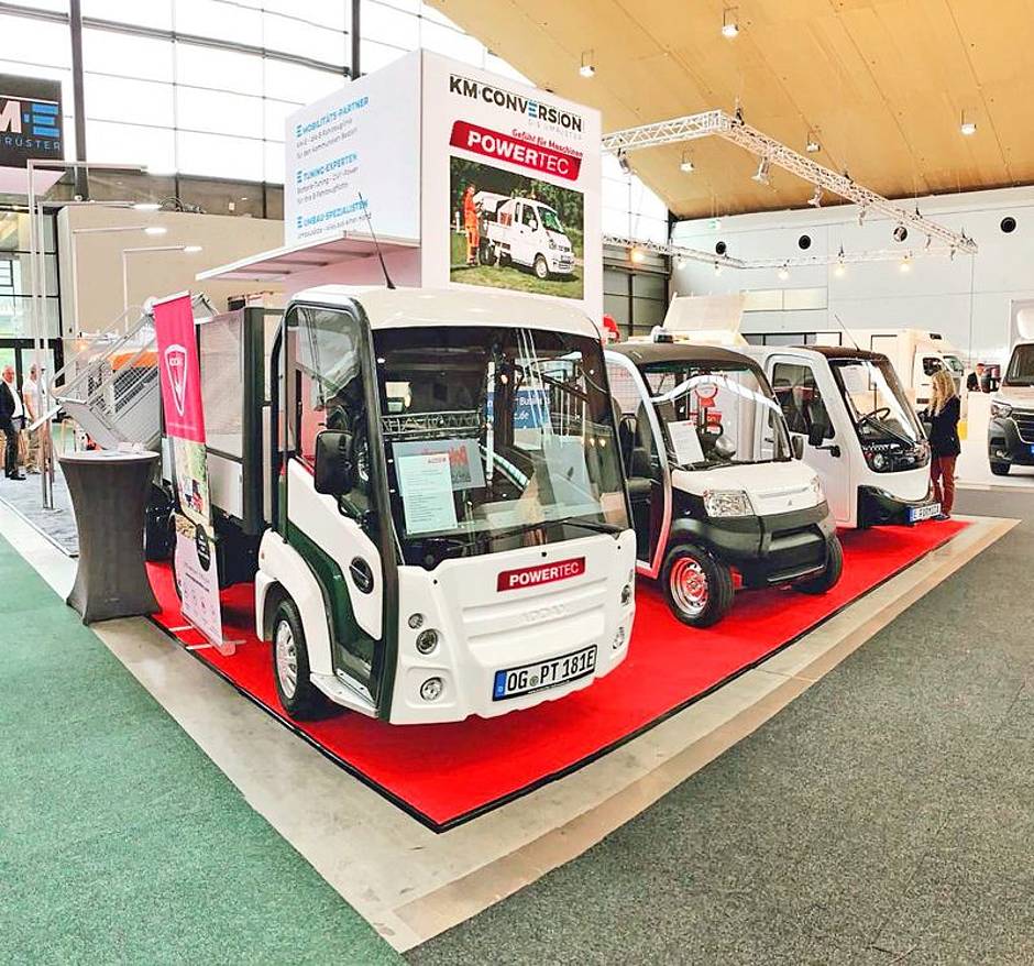 Mit ihrer Vier-Qualitätsmarken-Präsentation stabilisierte POWERTEC-E-Mobility den Trend der kompakteren Elektro-Nutzfahrzeuge. Diese Strategie ging auf. Für den Antrieb bedarf es keiner komponentenlastigen Wertschöpfungsketten wie bisher oder Technik, die sich noch im Entwicklungsstadium befindlich und nicht serienreif ist. Die vorgestellten E-Motoren bestehen aus seriösen Innovationen, Synergien, vorhandener, praxisbewährter Zukunftstechnologien. Das vielbestaunte Messe-Highlight aus dem ePOWERTEC-Sortiment war das umgerüstete ALKE E-Nutzfahrzeug. Bei höherem Tempo profitieren Kommunal- und Privatkunden von den begehrten optimierten bzw. längeren Reichweiten. Das bedeutet ein absolutes Spitzenprodukt der Zusammenarbeit von KM-Conversion, GVI und POWERTEC in dieser Bau- und Tragfähigkeitsklasse.