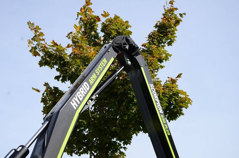 GreenTec setzt auf eine besonders robuste Bauweise für den Profi-Einsatz. Deshalb werden die neuen Scorpion-Maschinen aus hochfestem Strenx-Stahl gefertigt, wodurch der Auslegearm stärker konstruiert werden kann, sein Eigengewicht aber reduziert wird. Dies bietet dem Anwender zusätzlichen Spielraum bei der Auswahl der Anbaugeräte für das Mähen, Schneiden, Sägen und Mulchen.