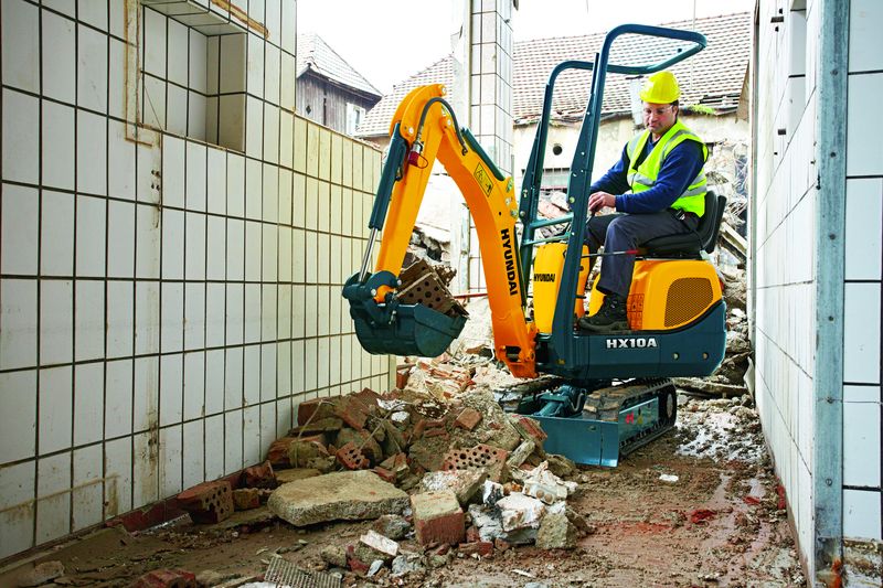 Mit der Einführung des neuen HX10A ist Hyundai erstmals auf dem Mikrobaggermarkt vertreten. Dank seiner schlanken Konstruktion sorgt der HX10A für problemlose Transporte, passt durch alle Zufahrten und ermöglicht den Betrieb bei beengten Platzverhältnissen. Der Monoausleger ist an einer Schwenksäule montiert, sodass der HX10A Grabarbeiten an einer Wand oder über die gesamte Breite der Maschine ausführen kann. Dies ist besonders auf kleinen Baustellen nützlich, wenn ein Umpositionieren des Baggers schwierig werden könnte. Mit seinem geringen Betriebsgewicht von gerade einmal 1000 kg und seinen hervorragenden Hub- und Losbrechkräften eignet sich der 1-Tonnen-Minibagger perfekt für Arbeiten auf engem Raum, beispielsweise im Garten- und Landschaftsbau, auf Baustellen in Wohngebieten, für Abbrucharbeiten und für den Einsatz in Innenbereichen.