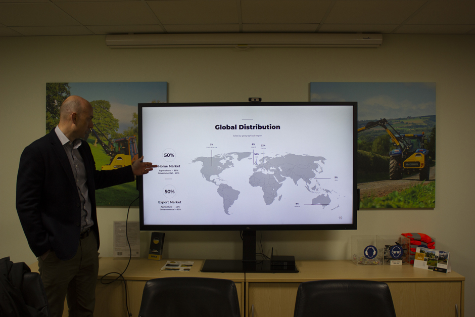 „Das Wetter wird heute nicht besonders gut, aber wir haben unser Programm so geplant, dass wir von den Regenschauern verschont bleiben“, berichtet Edward Hall, Export Sales Manager bei McConnel, mit Blick auf die Wolken, die sich am grauen Himmel zusammenziehen. Vorerst ist das typisch englische Wetter aber nicht so tragisch, denn die Tour bei dem Hersteller zieht sich erst einmal durch das Werk, vorbei an automatischen Schweißmaschinen, Laserschneidern und einer Menge halbfertig montierter Geräte. 174 Mitarbeiter produzieren hier pro Jahr 2.500 Funkraupen und Traktoren-Ausleger – sogenannte „Power Arms“ – die mit Mähern oder Heckenscheren ausgestattet sind. Diese Auslegerwerkzeuge werden schon seit 1948 in Ludlow hergestellt und McConnel konnte sich damit zuerst in den West Midlands und in den folgenden Jahrzehnten international bei Anwendern verschiedenster Gewerke etablieren. Ein Ursprung dieser Produktionsgeschichte liegt im ländlichen Ludlower Umland und dem lokalen Bedarf an Werkzeugen zur Heckenpflege. Denn die Gewächse waren Mitte des 20. Jahrhunderts wichtig als Begrenzungsmöglichkeiten für Bauern, um das eigene Vieh zusammenzuhalten. Mittlerweile ist diese Funktion nicht mehr so relevant, die Hecke aber nach wie vor beliebt. Das geht sogar so weit, dass in Großbritannien nationale Wettbewerbe abgehalten werden, um die beste Hecke zu küren. Seine Ursprungs-Klientel wird das Unternehmen daher so schnell nicht verlieren.
