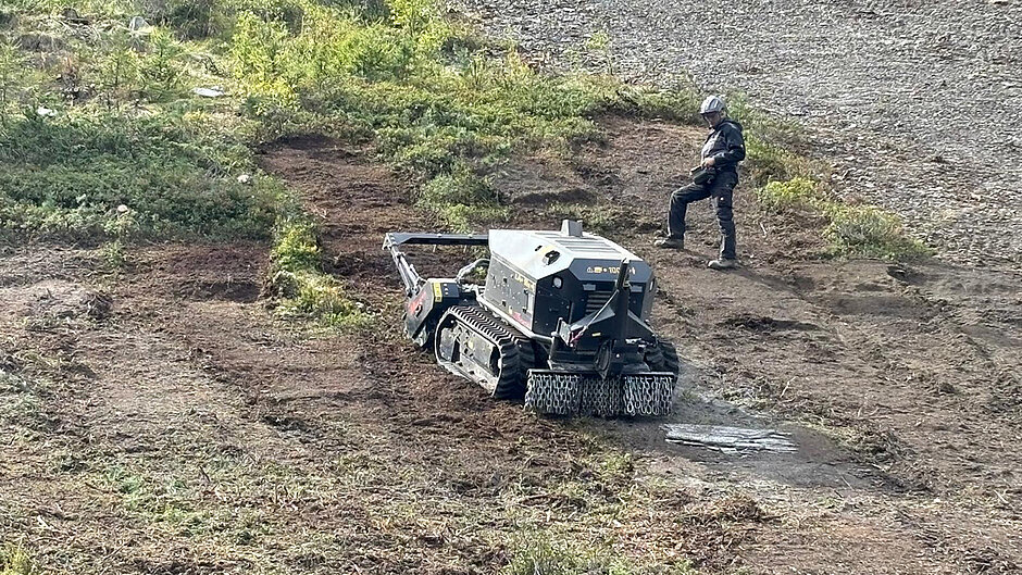Eine hohe Wendigkeit, das kompakte Design und die starke Leistung überzeugten ebenso wie der bodenschonende Einsatz am Hang. Während der Testphase wurden sämtliche Pistenbereiche, Zufahrten und Böschungen mit dem angebauten Mulcher bearbeitet – effizient, zuverlässig und auch in steilem Gelände problemlos.