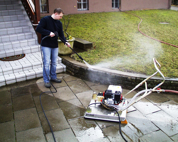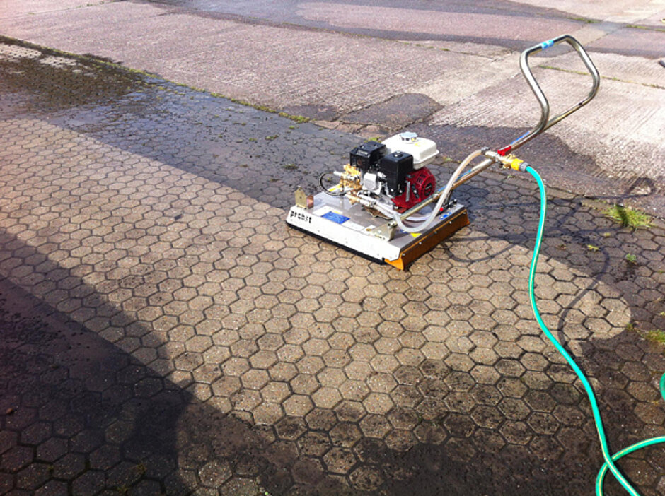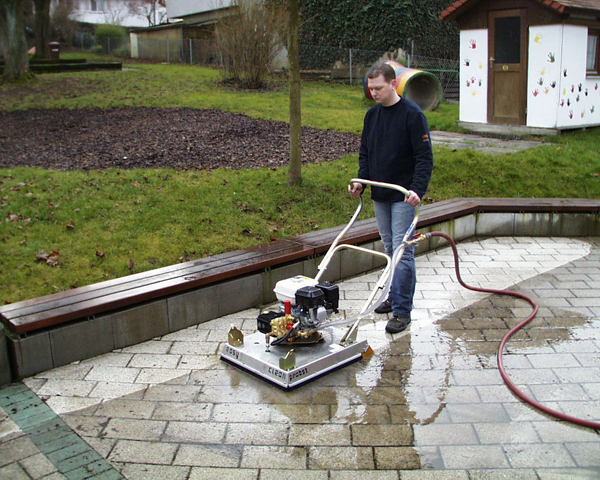 Betonpflaster-, Platten- und Natursteinbeläge sehen oft schon nach kurzer Zeit unansehnlich aus, da die Oberflächen und Fugen verschmutzt und vermoost sind. Nach dem Winter, haben sich in den Fugen zusätzlich noch Streusalzreste angesammelt. Häufig wird versucht mit einem handelsüblichen Hochdruckreiniger den ursprünglichen Glanz wiederherzustellen und die Fugen zu reinigen. Doch der Hochdruck-Wasserstrahl wird von den Fugen abgelenkt und verschmutzt dabei sowohl die angrenzenden Wände und Pflanzen, als auch die Personen im Umkreis. Von der Industrie werden zwar Flächenreiniger mit Abdeckungen angeboten, diese sind jedoch meist nicht so kraftvoll, haben häufig eine geringere Arbeitsbreite und sind umständlich zu bedienen.