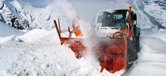 Eine besondere Domäne der Arktik ist die Schneeräumung. Diese Anwendung ist stark auf Traktion angewiesen. Schließlich muss das Räumschild große Mengen schweren Schnees beiseite schieben. Weil Ketten auf Schneepflügen und Schneefräsen oft im Dauereinsatz betrieben werden, ist auch die hohe Laufleistung und lange Lebensdauer dieser Kette ein Argument für die wirtschaftliche Arktik. Und die Fahrer freut ein angenehmer Nebeneffekt des dichten Wabenlaufnetzes: Es läuft ungewöhnlich ruhig und macht den harten Schichtdienst etwas angenehmer. Die Arktik ist hauptsächlich auf schwerstem Gerät zu Hause.