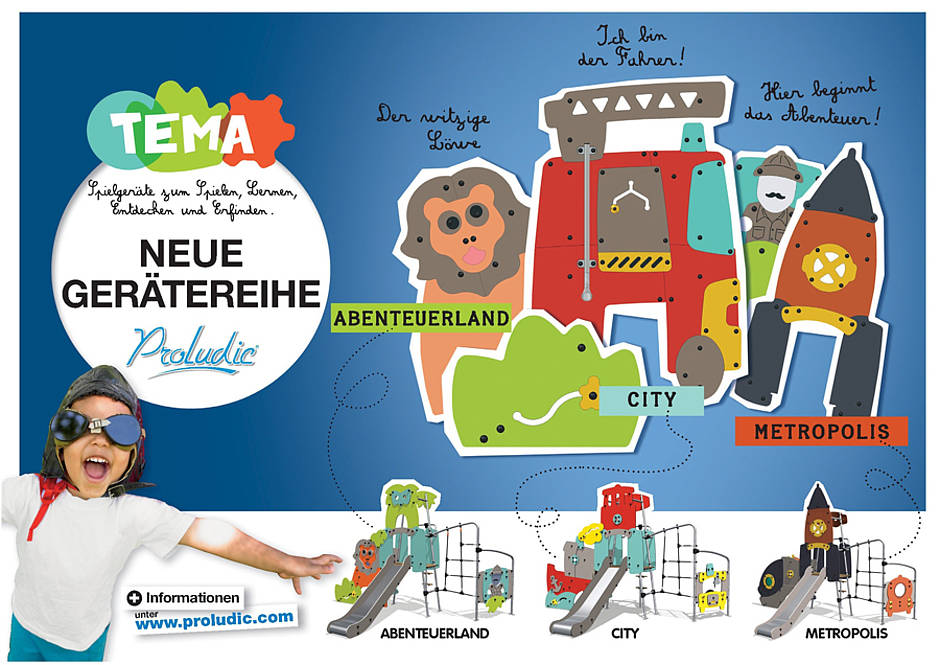 Proludic erweitert sein Angebot mit einer neuen multifunktionalen, kompakten und extrem verspielten Gerätereihe für Kinder ab 2 Jahren, in den Themen City, Metropolis und Abenteuerland.
