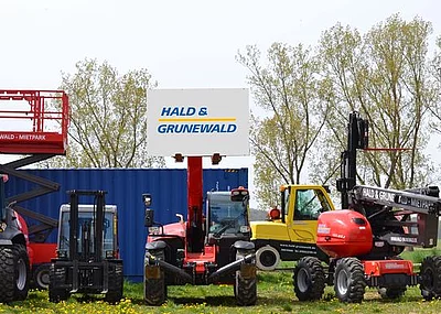 Seit mehr als 50 Jahren betreut Hald & Grunewald mit einer breiten Produktpalette an Flurförderzeugen und Dienstleistungen den süddeutschen Raum und ist Vertragshändler der Marken MANITOU, HYSTER und BAUMANN. Ab sofort ergänzen nun mehrere Knick- und Kompaktlader der Marke MUSTANG den Mietservice.