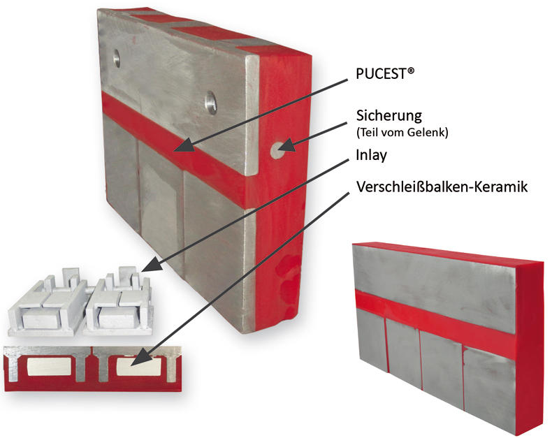Der Vorteil der Kombi-Räumleisten besteht in der Sandwich-Bauweise aus Stahl und PUCEST® und einem Inlay aus Keramik. Eine hohe Laufruhe sowie ein geringer Verschleiß zeichnen diese Leisten aus. Die Kombination der Materialien durch integrierte Verschleißelemente aus Keramik, erhöhen die Gleitfähigkeit und Elastizität der Leiste auf dem Straßenbelag und damit auch die Abriebfestigkeit.