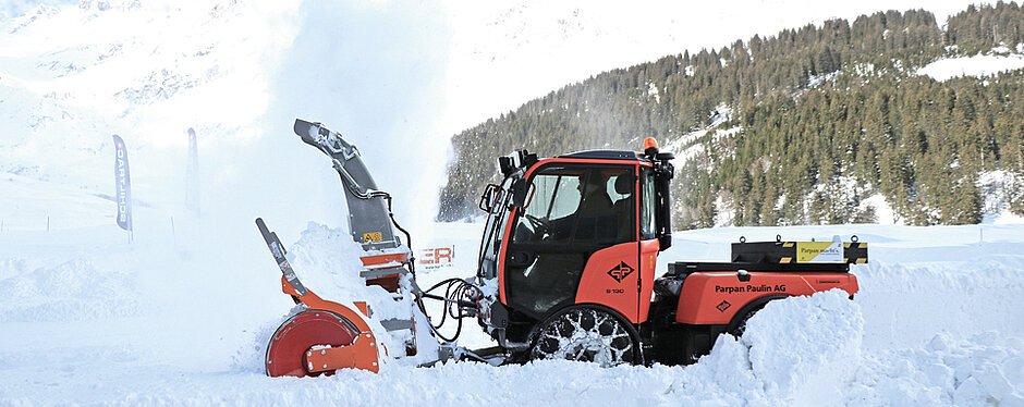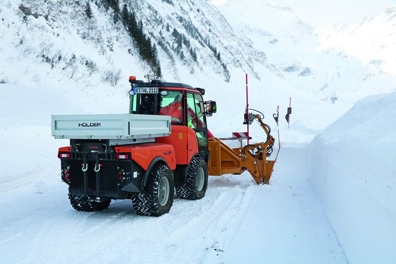 Mit einem bis zu 130 PS starken Dieselmotor stellt die S-Reihe das Arbeitstier unter den Holdern. Auf der Winterdemo präsentiert sich der Holder S 130 mit Westa Hochleistungsfräse und Schleuder am Start. Was folgt, lässt viele Zuschauer staunen: Mit konstanter Geschwindigkeit schiebt sich der Holder S 130 durch gewaltige Schneeberge. Der Fahrer legt dabei nahezu die gesamte Motorleistung auf die mechanische Zapfwelle und betreibt Fräse und Schleuder in Höchstleistung. „Die S-Reihe bringt unseren Leitspruch ,stark, schmal, genial‘ sehr eindrucksvoll zum Ausdruck“, sagt Domenico Condito nicht ohne Stolz.