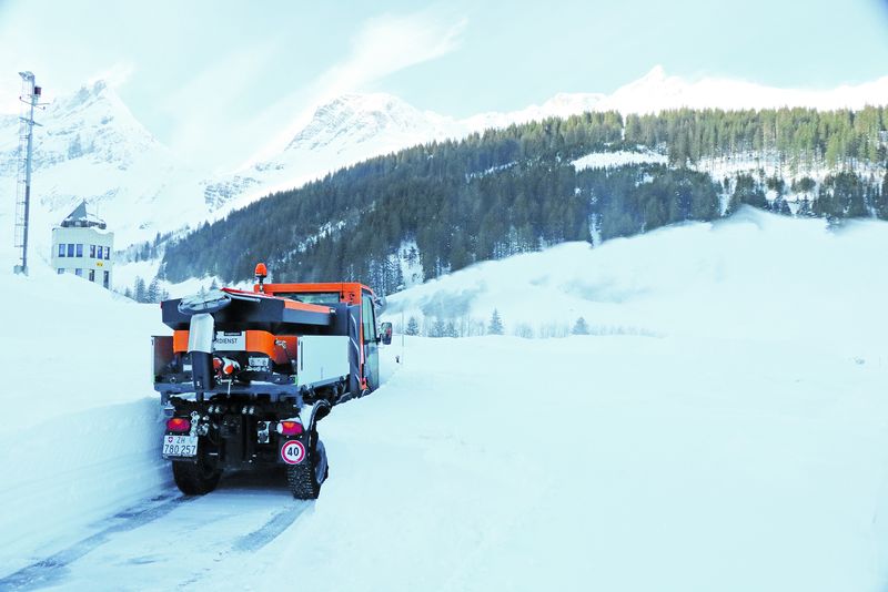 Am Ende des Tales zeigt das Thermometer an diesem Morgen minus sechs Grad, rund um die Fahrzeughalle bläst ein eisiger Wind. Aus einer meterhohen Schneedecke ragt das Kanonenrohr eines Leopard-Panzers hervor. Im Sommer dient der Schießplatz Wichlen der Schweizer Armee als Übungsgelände, heute proben Winterdienstfahrzeuge unterschiedlicher Hersteller den Ernstfall bei Schnee und Eis.