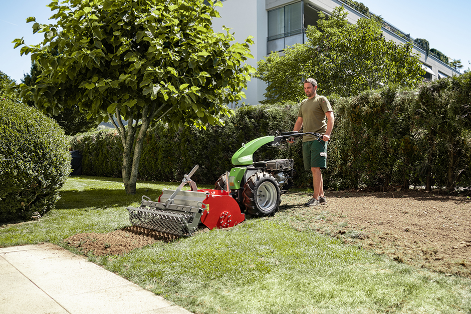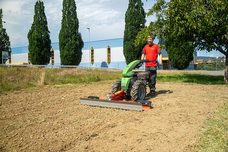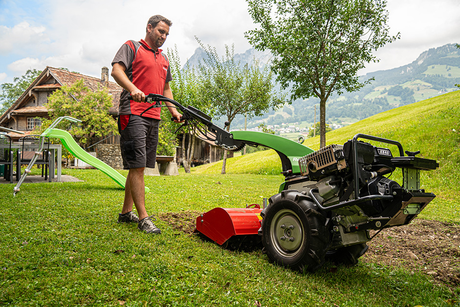 Dank seiner schlanken Bauweise mit geringem Flanschmaß und einer schmalen Gesamtbreite ist die Maschine besonders für enge oder schwer zugängliche Arbeitsbereiche geeignet. Ob in kleinen Gärten, verwinkelten Landschaften oder dicht bepflanzten Flächen – er überzeugt mit enormer Manövrierfähigkeit. Durch seine ausgeglichene Gewichtsverteilung sind selbst Wendemanöver mit Bodenfräsen einfach und komfortabel umsetzbar.