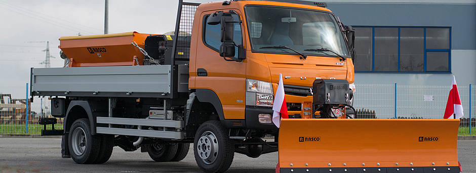 Leichte Nutzfahrzeuge, geeignet für die Winterinstandhaltung von Straßen, stellen wegen ihrer geringen Tragfähigkeit eine Herausforderung bei der Fahrzeugausstattung durch Erweiterungen für die Schneeräumung und Enteisung dar. RASCO hat auch für solche Fälle eine Lösung. Gemäß Kundenbestellung hat RASCO den FUSO Canter mit einer vorderen Montageplatte, einem BILO Schneepflug und einem JUNIOR Streuer ausgestattet, womit er zu einem Einsatzfahrzeug des Winterdienstes wurde.