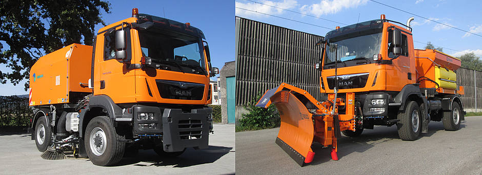 RASCO und die Gebrüder Trilety, ein österreichischer Hersteller von Anbaugeräten für das Reinigen und Waschen kommunaler Infrastruktur, stellten ein Mehrzweckfahrzeug für die Sommer- und Winterinstandhaltung von Straßen vor. Basierend auf dem MAN TGM 13.250 4x4-Fahrgestell ist das Fahrzeug für den schnellen Wechsel von Anbaugeräten für die Winter- und die Sommerinstandhaltung von Straßen angepasst. Für die Schneeräumung kann auf die Vorderseite des Fahrzeugs schnell und einfach der RASCO MOSOR PK Schneepflug montiert werden, während der RASCO SOLID X-Streuer oder der Trilety TK56 Dual-Kehrer schnell und einfach direkt auf das Fahrgestell montiert werden können. Alle Anbaugeräte werden durch das im Fahrzeug eingebaute Hydrauliksystem angetrieben und sind komplett auf die Charakteristik des MAN Fahrgestells angepasst.